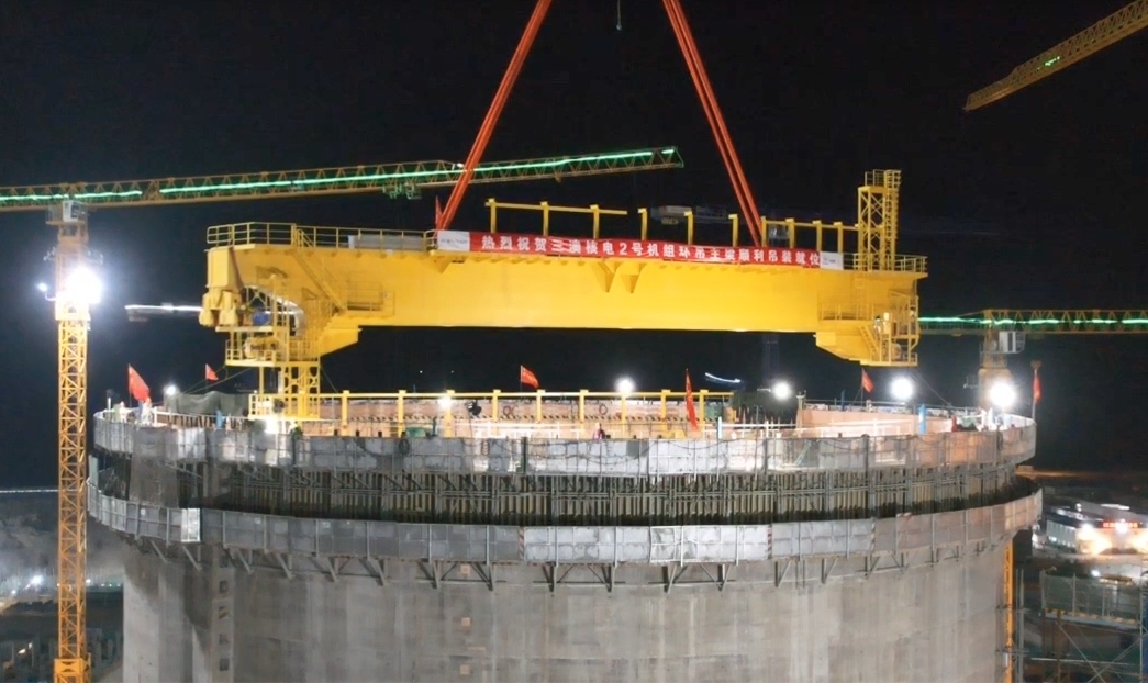 9月22日18點06分,經過吊裝前檢查、掛設吊帶、連鉤、試吊、旋轉等一系列吊裝程序,由中核二三承建的中廣核浙江三澳核電項目一期工程2號機組環吊第二根端梁順利就位完成,環吊施工主體工作基本完成,為后續穹頂吊裝、主設備安裝就位奠定了堅實的基礎,同時也標志著2#機組核島安裝工作全面展開。