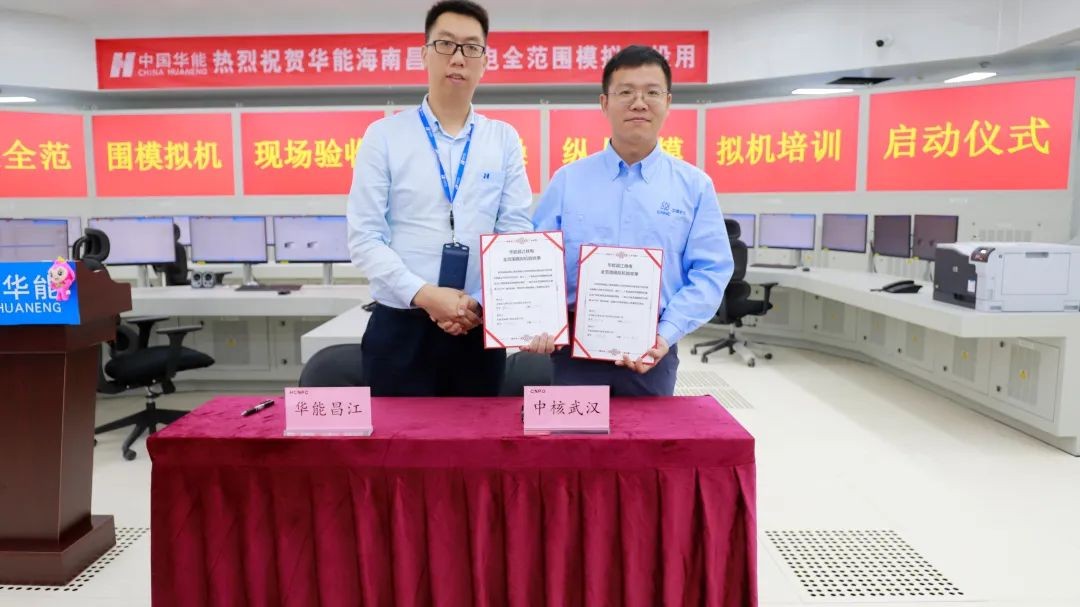 培訓(xùn)學(xué)員在啟動(dòng)儀式上進(jìn)行了模擬機(jī)并網(wǎng)操作演示,經(jīng)過團(tuán)隊(duì)高效配合及精確操作,演練一次成功。隨后,華能昌江核電與中核武漢雙方代表進(jìn)行全范圍模擬機(jī)現(xiàn)場驗(yàn)收簽字。