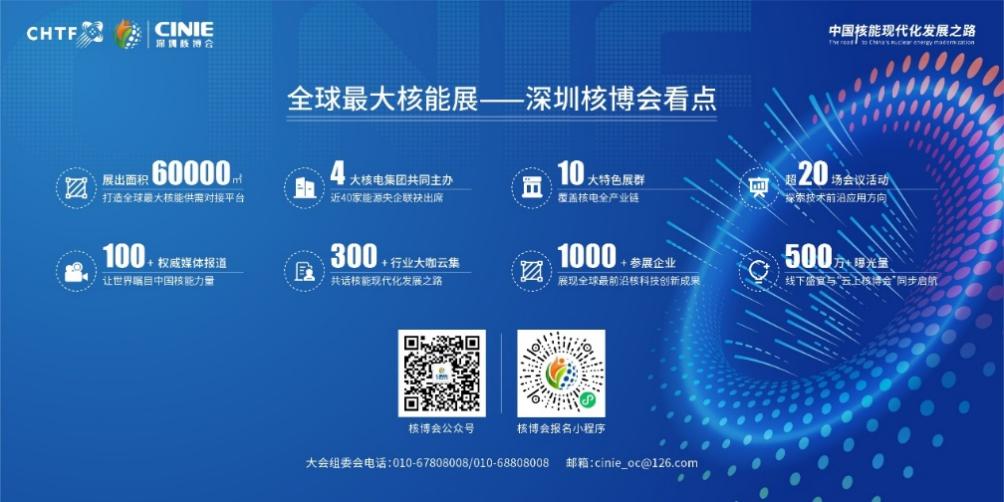 中國核能高質量發展大會暨深圳國際核能產業創新博覽會(簡稱“深圳核博會”)將于11月15-18日在深圳國際會展中心舉辦。大會由中國能源研究會、中國廣核集團有限公司、深圳市發展和改革委員會共同主辦,中核集團、中國華能、中國大唐、國家電投、國家能源集團聯合主辦,主題為“核聚灣區·能動世界”。