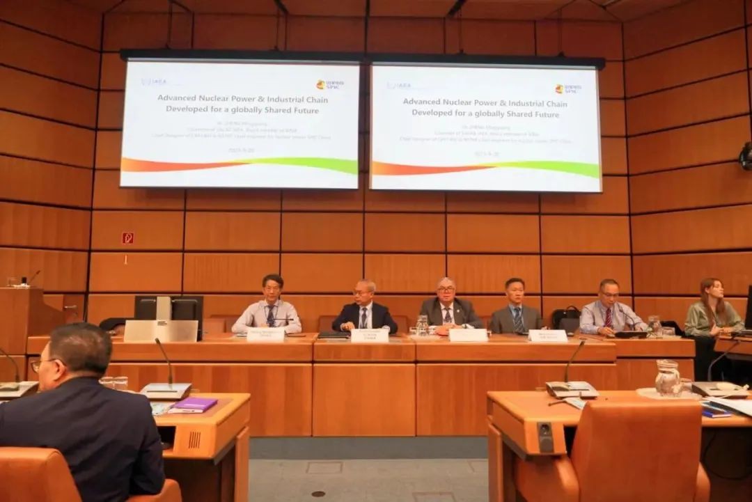 在IAEA第67屆全體大會(huì)期間(9月25-29日),鄭明光與上海核工院公司副總經(jīng)理邱忠明一行參加會(huì)議活動(dòng),并舉辦了“先進(jìn)核電型號(hào)與產(chǎn)業(yè)鏈體系支撐構(gòu)建人類命運(yùn)共同體”主題邊會(huì),向世界展示了國(guó)家電投核電產(chǎn)業(yè)布局以及建設(shè)成果,并就“核能促進(jìn)凈零排放”倡議提出中國(guó)觀點(diǎn)。中國(guó)常駐維也納辦事處和其他國(guó)際組織代表、特命全權(quán)大使李松、IAEA副總干事楚達(dá)科夫等參加了公司邊會(huì)并致辭。