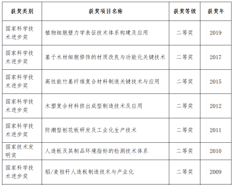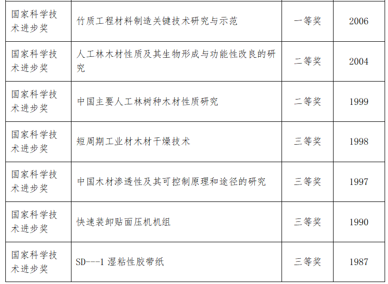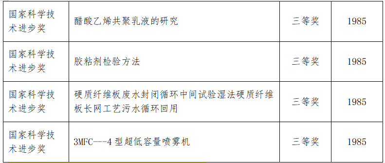 表1 木材工業(yè)研究所獲得的國(guó)家級(jí)獎(jiǎng)勵(lì)