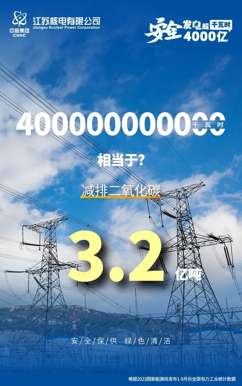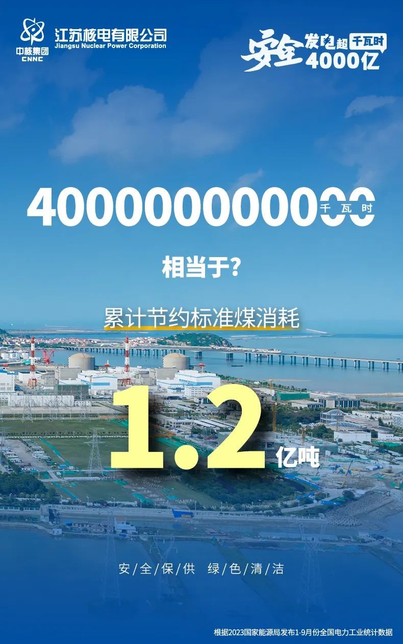 2023年10月25日,中核集團(tuán)旗下中國(guó)核電(股票:601985)控股的田灣核電基地累計(jì)發(fā)電量突破4000億千瓦時(shí),等效累計(jì)節(jié)約標(biāo)準(zhǔn)煤消耗1.248億噸,減排二氧化碳3.28億噸,相當(dāng)于在長(zhǎng)三角地區(qū)新增種植超過10.2萬(wàn)公頃綠色森林,為助力“碳達(dá)峰、碳中和”目標(biāo)實(shí)現(xiàn)貢獻(xiàn)田灣智慧和中核力量。