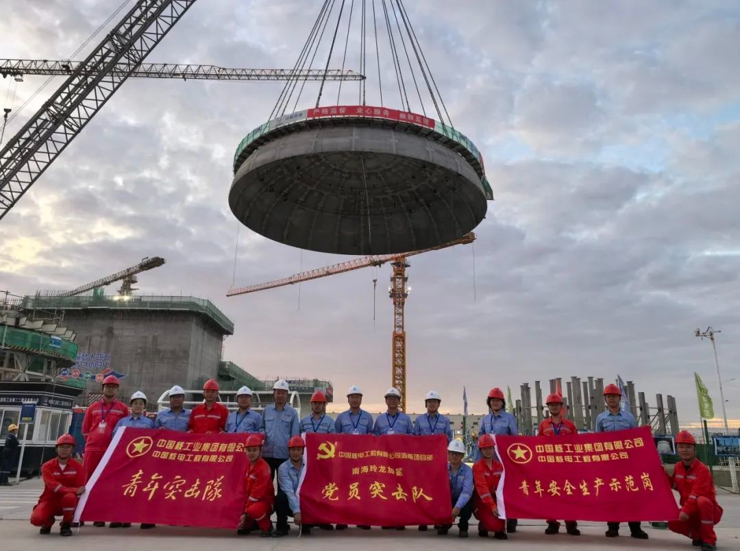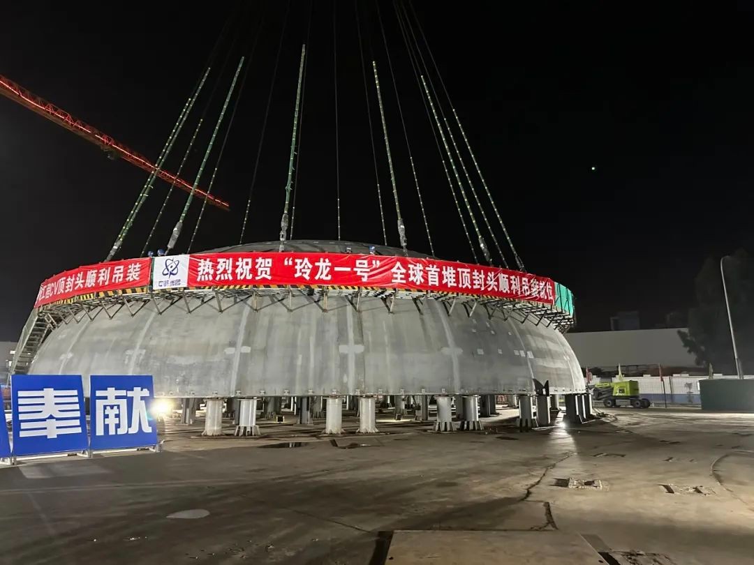 2023年11月03日07時28分,由中核工程總包的全球首個陸上商用模塊化小堆“玲龍一號”鋼制安全殼頂封頭吊裝就位,提前一級里程碑節點40天,標志著小堆工程由土建階段全面轉入設備安裝階段。