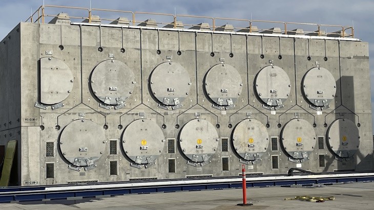 NUHOMS MATRIX 在 Wolf Creek 使用核燃料干式存儲系統:每個圓形模塊開口底部的入口允許檢查設備在模塊關閉時完全檢查存儲的罐。