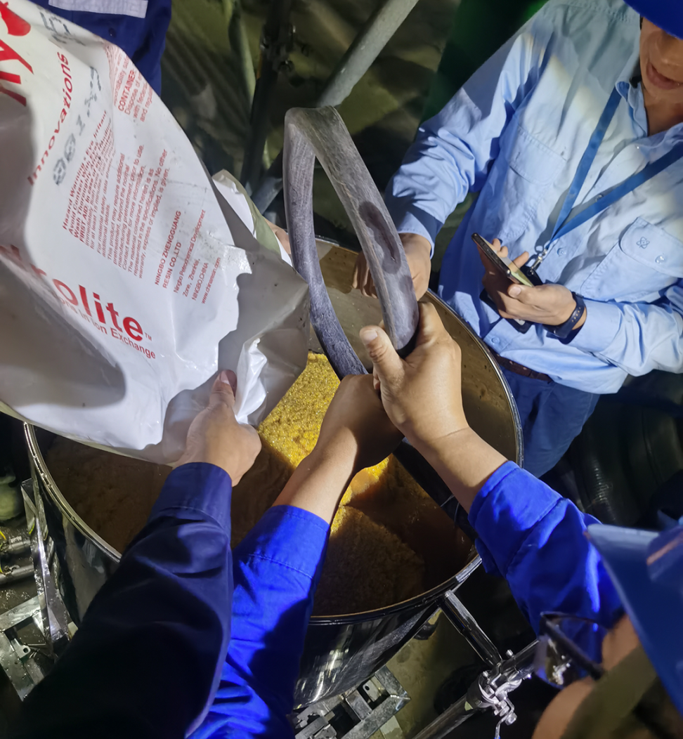 10月23日下午六點,除鹽床陽樹脂卸載到現場,等到第二天裝樹脂,調試人員最后一次詳細討論裝填方案后,張清元科長提出:“我們晚一點下班,今晚進行樹脂預安裝,把整個裝樹脂的流程走一遍,有什么問題今晚解決,明天一上班就可以裝樹脂了。”