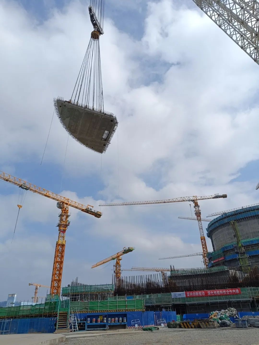 2023年12月05日,海南昌江核電二期4號機組首個“華龍一號”不銹鋼襯里與混凝土結構一體化模塊——非能動堆腔注入水箱(CIS)頂板整體吊裝順利完成。整個吊裝過程平穩有序、安全高效,最終與CIS水箱模塊三精準對接,本次吊裝的順利進行,為后續4號機組反應堆廠房穹頂吊裝里程碑節點奠定了堅實基礎。