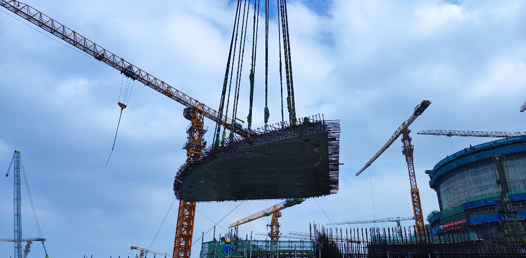 2023年12月5日16點46分,中核機械工程圓滿完成“華龍一號”海南昌江核電二期工程4號機組反應(yīng)堆廠房內(nèi)部結(jié)構(gòu)非能動堆腔注入水箱(CIS)頂板吊裝工作,整個吊裝過程平穩(wěn)有序、安全高效。本次吊裝的順利進(jìn)行,為后續(xù)4號機組穹頂?shù)跹b里程碑節(jié)點奠定了堅實基礎(chǔ)。
