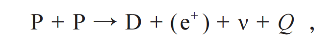 而太陽(yáng)上的核聚變已經(jīng)存在了幾十億年,現(xiàn)在還在發(fā)光、發(fā)熱。太陽(yáng)能量的99%來(lái)自PP反應(yīng)鏈(P代表質(zhì)子)[2],1%來(lái)自碳氮循環(huán)。PP反應(yīng)鏈有多個(gè)反應(yīng)道,例如: