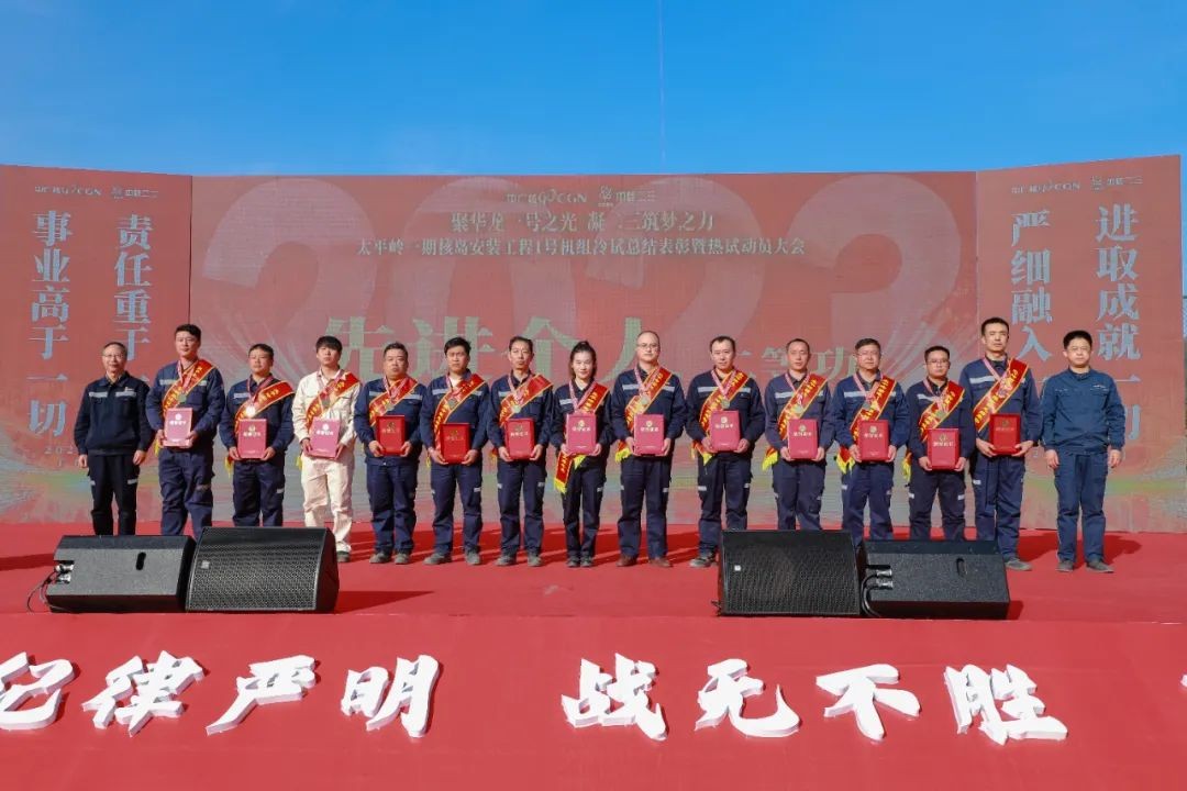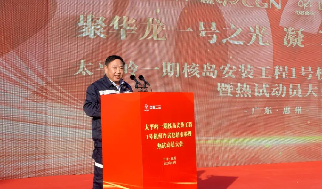 12月25日,中核二三組織召開了太平嶺核電一期核島安裝工程1號機組冷試總結表彰暨熱試動員大會。中廣核惠州核電有限公司(以下簡稱“惠州核電”)黨委書記李靖,中廣核工程有限公司惠州項目部(以下簡稱“工程公司”)黨委書記、總經理肖于勛參加大會并講話。惠州核電黨委委員、副總經理喬丕業,深圳市核鵬工程監理有限責任公司惠州核電項目監理部(以下簡稱“監理公司”)總監理工程師劉金巖參加大會。中核二三黨委書記、董事長李啟彬參加大會并作動員講話,董事朱紀、王義,監事會主席陳力得,總經理、黨委副書記范凱,黨委副書記陸文江,副總經理、總工程師馬慶會,核能事業部總經理、黨委副書記劉海珂等相關人員參加大會。太平嶺項目部總經理、黨委書記侯彥文主持大會。