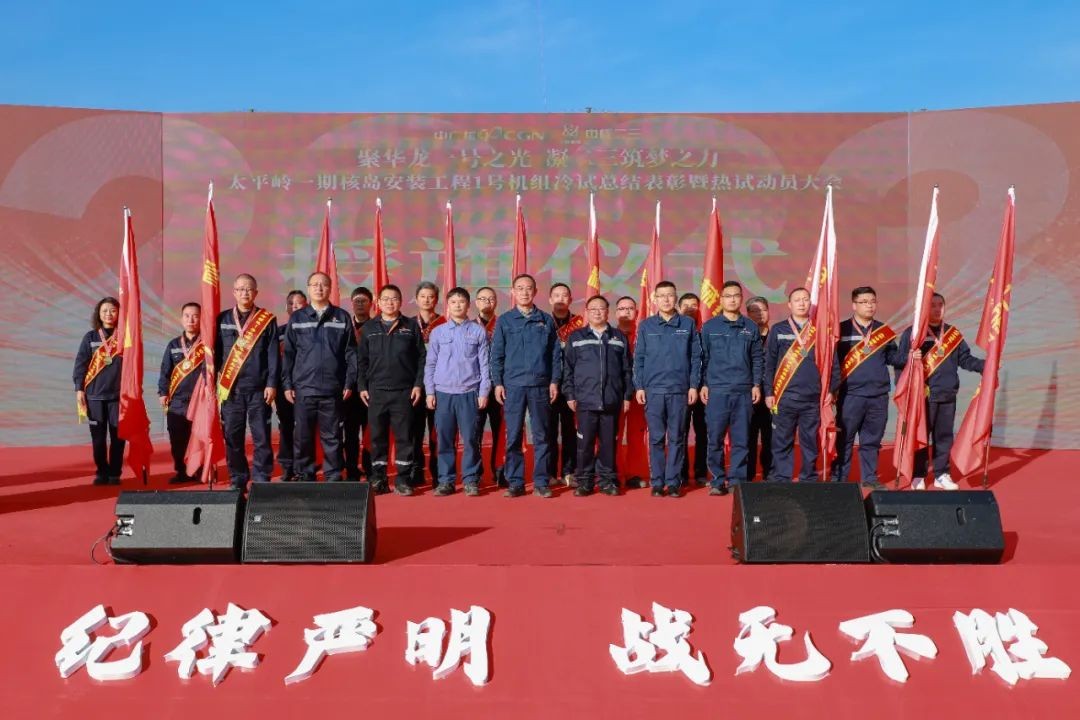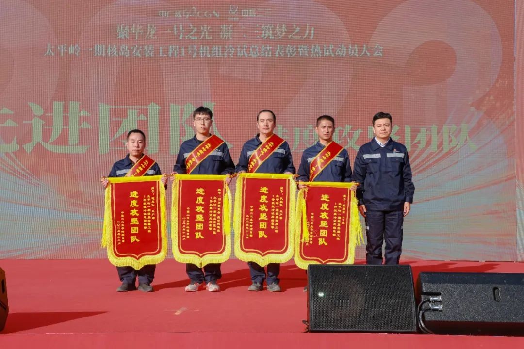 會議總結了2023年度太平嶺項目部工作,對2024年1號機組熱試進行了部署和安排,表彰了1號機組冷試先進集體53個、先進個人228名,并舉行熱試攻堅授旗儀式為14支攻堅隊授旗,熱試攻堅隊代表作表態發言。