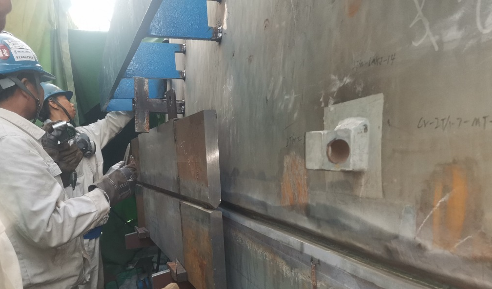 為落實創(chuàng)新驅(qū)動發(fā)展戰(zhàn)略,提高施工效率,中核二二昌江核電項目管理團隊成立專項課題組和“黨員攻關(guān)突擊隊”,大力推進埋弧橫焊技術(shù)研發(fā)及應(yīng)用。相比于傳統(tǒng)的焊條電弧焊和熔化極氣體保護焊工藝,埋弧橫焊具有焊縫質(zhì)量高、勞動條件好、生產(chǎn)效率高等優(yōu)點,適合大厚板結(jié)構(gòu)的自動焊接,可有效提升工程建造質(zhì)量,縮短建設(shè)工期。