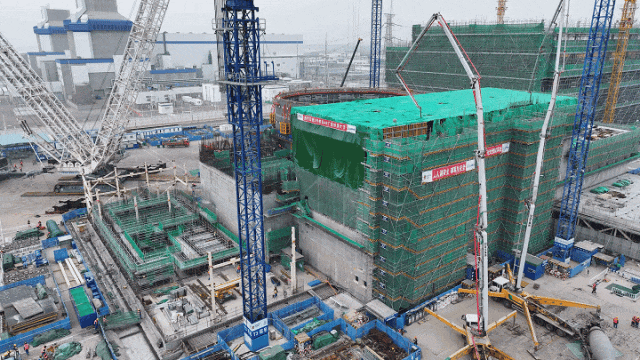 12月29日20時28分,海陽核電3號機組附屬廠房2、3區屋面順利澆筑完成,標志著3號機組附屬廠房(以下簡稱“40廠房”)主體結構封頂。這是我國核電建設歷史上首例附屬廠房先于反應堆廠房封頂的項目,也是上海核工院立足技術引領,創新工作思路,提升現場施工工效的具體體現。