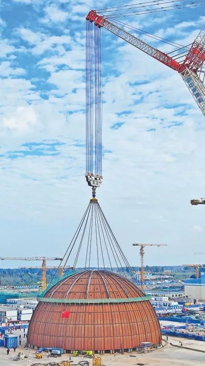 海南昌江核電基地“華龍一號(hào)”4號(hào)機(jī)組內(nèi)穹頂日前吊裝就位,為后續(xù)機(jī)組安裝調(diào)試及并網(wǎng)發(fā)電奠定基礎(chǔ)。