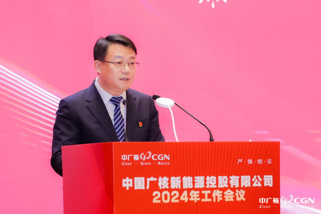 張志武作題為《改革創新促發展,奮發有為建新功,全力推動公司高質量發展再上新臺階》的報告。報告從發展規模、精益運營、科技創新、深化改革、安全管控、黨的建設等六大方面概括總結了中廣核國內新能源2023年工作業績。報告指出,新能源2024年要抓好六個方面重點工作:一是堅定不移強化黨的領導黨的建設,著力營造“實”的干事氛圍。二是堅定不移實施“倍增計劃”,著力提高“快”的發展速度。三是堅定不移加大科技創新力度,著力培育“強”的增長動能。四是堅定不移推進深化改革,著力提升“好”的治理效能。五是堅定不移強化精益管理,著力開創“優”的經營局面。六是堅定不移筑牢紅線底線,著力鞏固“穩”的發展根基。