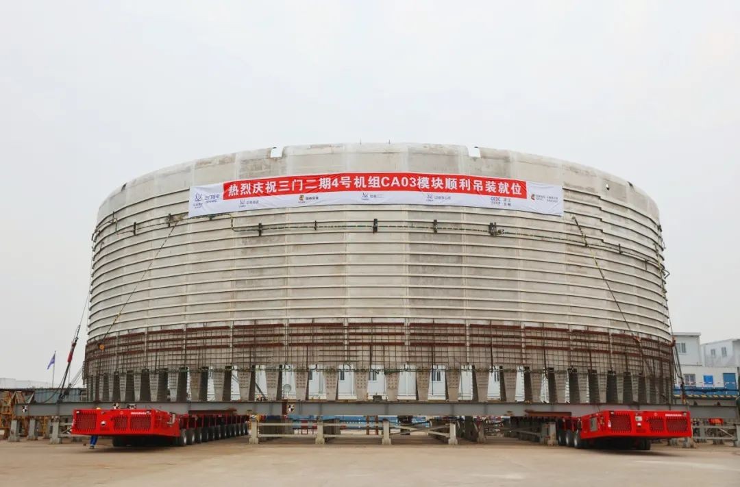 1月28日9時26分,三門核電4號機組CA03模塊順利吊裝就位,為后續安全殼內11305房間的形成創造了良好先決條件。