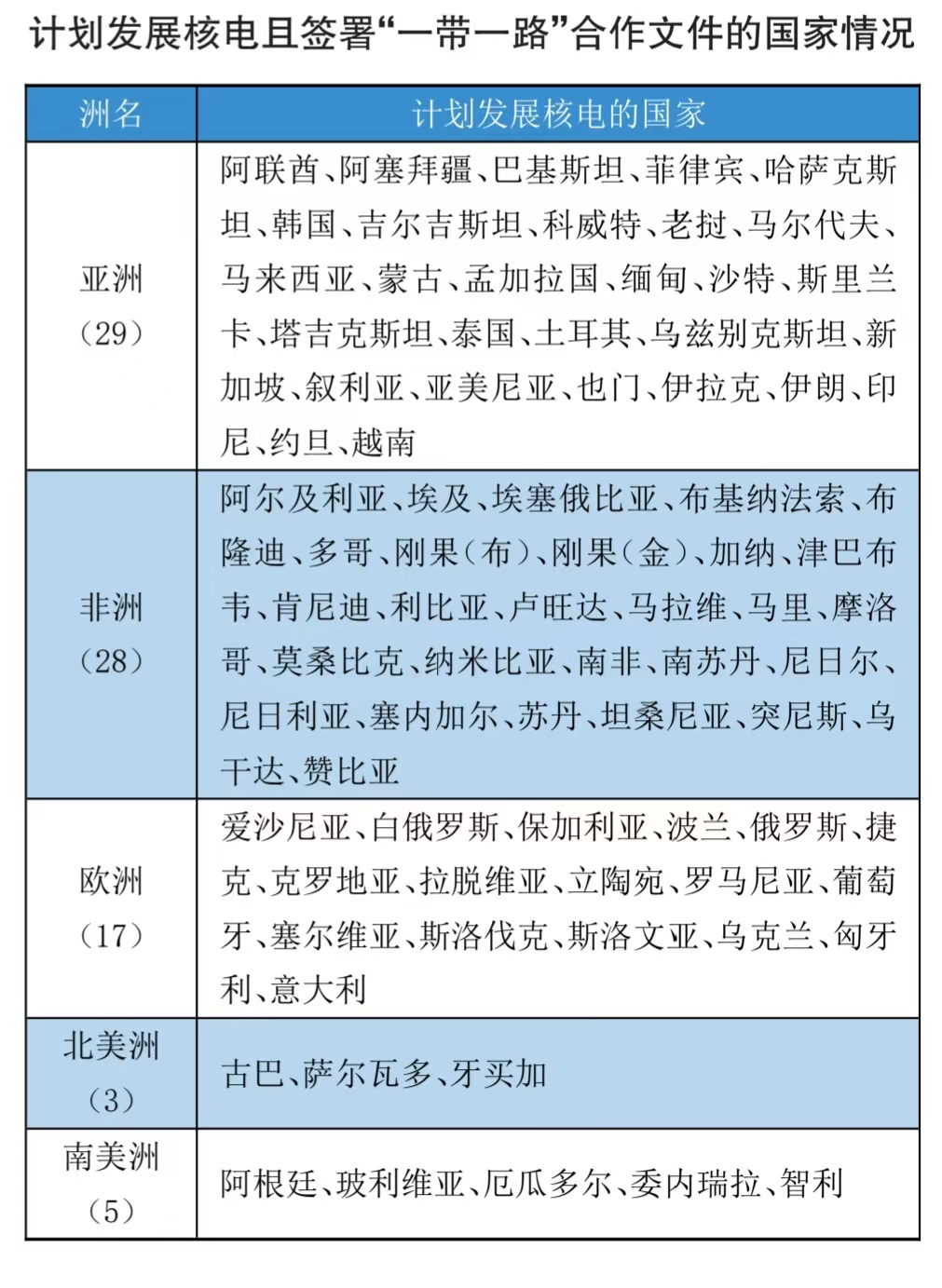 在全球具有在運核電機組的32個國家中,有16個(一半)的國家與我國簽署了“一帶一路”合作文件。這16個國家分別是阿根廷、亞美尼亞、白俄羅斯、保加利亞、捷克、匈牙利、伊朗、韓國、巴基斯坦、羅馬尼亞、俄羅斯、斯洛伐克、斯洛文尼亞、南非、烏克蘭、阿聯酋。
