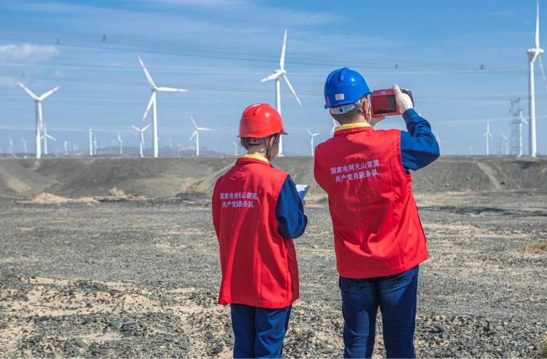 ▲國網新疆電力員工對達坂城風電場進行用電檢查,保障清潔能源安全上網