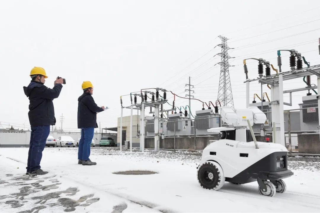 ▲國網山東電力應用電力巡檢機器人“福娃1號”巡檢設備