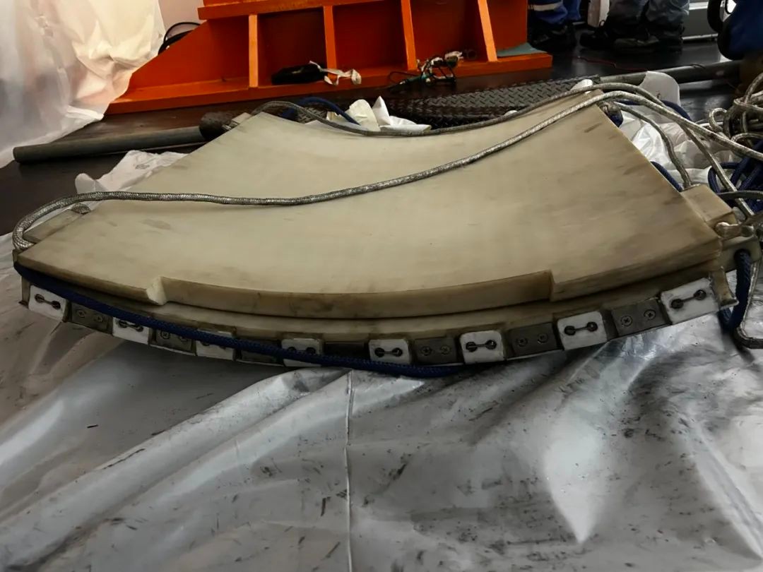 傳統(tǒng)發(fā)電機(jī)抽穿轉(zhuǎn)子整個(gè)過(guò)程都需要經(jīng)過(guò)雙行車起吊、行車與卷?yè)P(yáng)機(jī)牽引、降落轉(zhuǎn)子掛尼龍吊帶、行車配合進(jìn)行移動(dòng)抽出與穿入等復(fù)雜動(dòng)作。華龍一號(hào)機(jī)組發(fā)電機(jī)定子與轉(zhuǎn)子之間間隙極小,本次大修,發(fā)電機(jī)檢修項(xiàng)目組全程采用單行車,并配合自主研制的新型滑塊。該技術(shù)是對(duì)傳統(tǒng)工藝的突破與創(chuàng)新,優(yōu)化了整個(gè)發(fā)電機(jī)抽穿轉(zhuǎn)子的工期,同時(shí)避免了傳統(tǒng)雙行車配合消耗的時(shí)間。項(xiàng)目組自主創(chuàng)新研制的新型滑塊采用雙層結(jié)構(gòu),包括下層滑塊和上層滑塊。使用過(guò)程中,單層滑塊依次通過(guò)發(fā)電機(jī)定轉(zhuǎn)子間隙,對(duì)定轉(zhuǎn)子間隙要求更低。上下層滑塊通過(guò)凹槽和凸部配合,從根本上消除了滑塊錯(cuò)位的風(fēng)險(xiǎn),避免了轉(zhuǎn)子對(duì)定子繞組剮蹭的風(fēng)險(xiǎn)。該新型滑塊突破了傳統(tǒng)形式,使通過(guò)單行車抽轉(zhuǎn)子成為現(xiàn)實(shí),解決了檢修問(wèn)題,強(qiáng)化了安全生產(chǎn),創(chuàng)優(yōu)了維修工期,加強(qiáng)了成本控制。