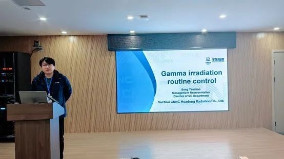 會上,中國同輻副總工程師尹玉吉介紹了中國同輻輻照加工業務近年的發展情況,華東輻照質量部負責人、中核檢測負責人分別向與會來賓分享了華東輻照的質量管理工作的情況并圍繞該主題進行了熱烈研討。