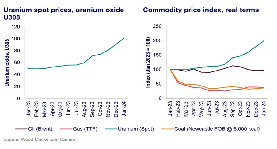 對鈾供應可用性和迅速上漲的鈾價格的擔憂給整個核行業帶來了挑戰。2023年,鈾是表現最強勁的商品,價格飆升。