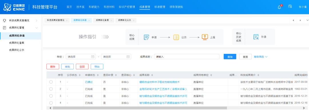 中核集團科技管理平臺成果轉化模塊