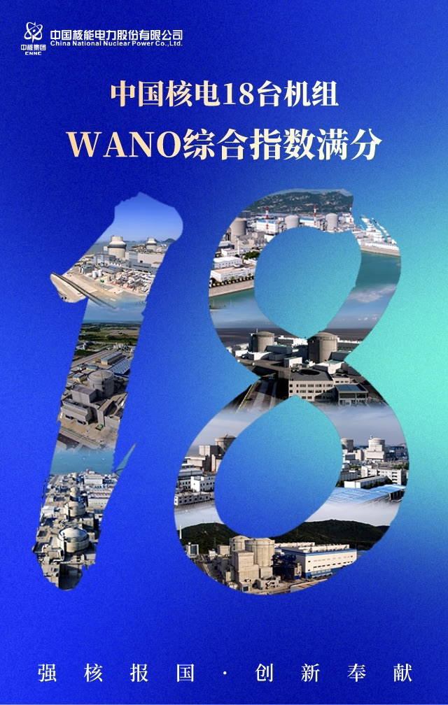 18臺WANO綜合指數滿分機組分別是:秦山核電一廠、秦山核電二廠1、2、3、4號機組,秦山核電三廠1號機組,方家山核電廠1、2號機組,田灣核電廠1、2、4、5號機組,福清核電廠1、2、3號機組,昌江核電廠1、2號機組,三門核電廠2號機組。其中我國大陸核電運行時間最久,機組數量最多、堆型最豐富的核電基地——秦山核電自1991年12月15日并網發電以來,已累計發電超8100億度,并連續兩年上網電量突破500億度(2023年上網電量520.27億度),9臺機組2023年度平均能力因子達到96.8%,在全球6臺機組及以上核電基地中位列第一,創造同類基地安全穩定運行的新紀錄。