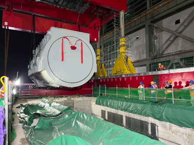 4月27日,三門(mén)核電3號(hào)機(jī)組發(fā)電機(jī)定子歷時(shí)9個(gè)小時(shí)順利吊裝就位,為常規(guī)島廠(chǎng)房封閉及后續(xù)汽輪發(fā)電機(jī)本體安裝奠定了堅(jiān)實(shí)基礎(chǔ)。