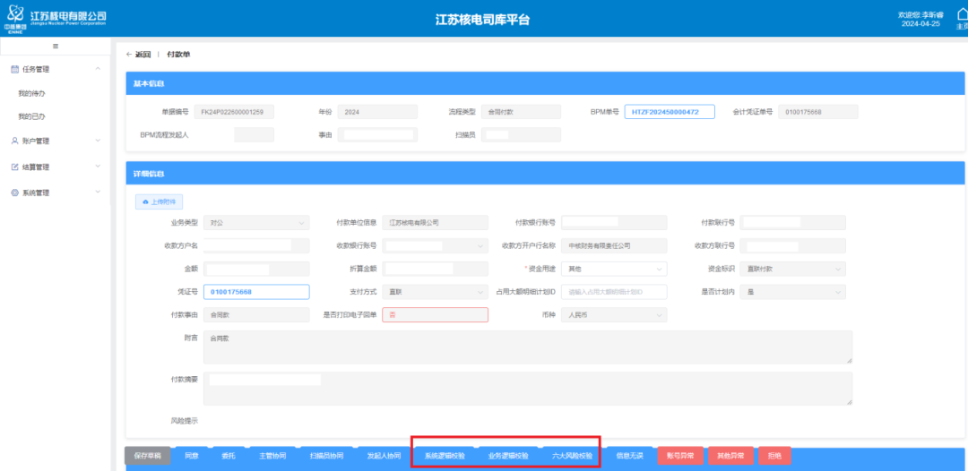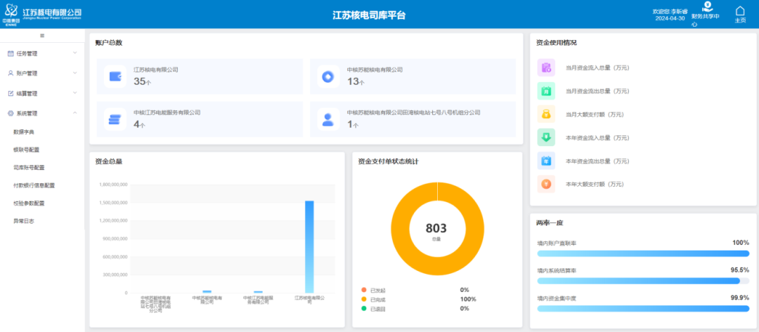 為響應中核集團、中國核電“建設一流司庫,助力集團高質量發展”的號召,實現江蘇核電“效能型”司庫建設目標。江蘇核電高度重視,始終秉承高位推動,發布專項工作方案并成立專項工作組。在集團司庫管理中心、中國核電的指導下,在信息技術專業團隊的支撐下,專項工作組與各業務處室緊密配合,江蘇核電司庫系統正式上線!