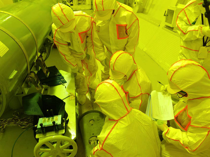 在巨大成功背后,我們發現的是靶件更換專項組人員忙碌的身影,從靶件更換工作涉及到的所有文件程序的討論編寫,到相關設備工器具的采購驗收,再到現場一遍又一遍的模擬演練,每個環節都認真嚴苛把控、絕無一失。