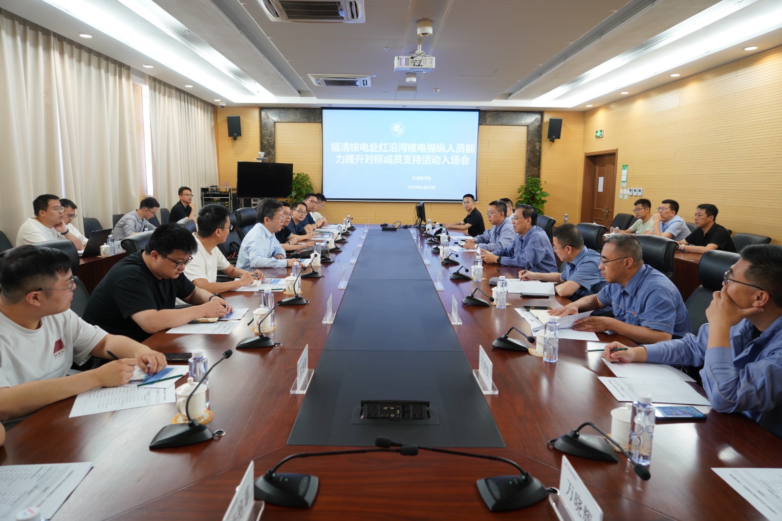 中國核能行業協會核電分會于2024年6月23日至28日組織開展了福清核電赴紅沿河核電操縱人員能力提升對標成員支持活動。本次活動由中國核能行業協會核電分會特邀專家、中核遼寧核電有限公司原副總經理葛政法擔任隊長,福清核電運行部門和培訓處共13名人員組成對標團隊。遼寧紅沿河核電有限公司第一副總經理張衛東,運行部門、培訓部等34名人員參加了此次成員支持活動。