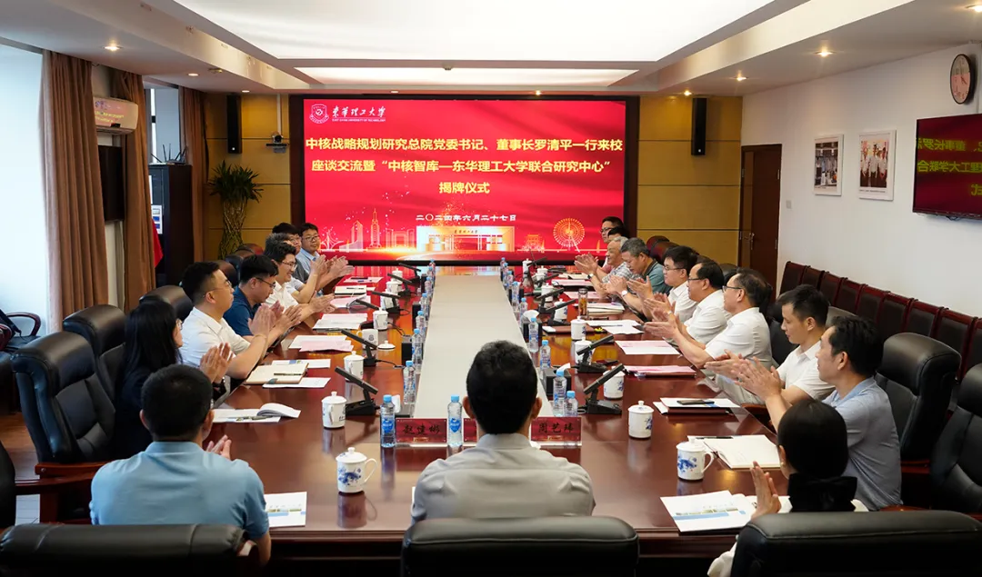 6月27日,中核戰略規劃研究總院(以下簡稱“總院”)和東華理工大學在江西省南昌市開展合作交流并舉辦“中核智庫—東華理工大學聯合研究中心”揭牌儀式??傇狐h委書記、董事長羅清平與東華理工大學黨委書記張福慶共同為“中核智庫—東華理工大學聯合研究中心”揭牌。東華理工大學黨委常委、副校長夏菲、熊國保、李滿根,核資源與環境國家重點實驗室主任湯彬,總院黨委委員、副院長康椰熙,院長助理張明出席揭牌儀式。
