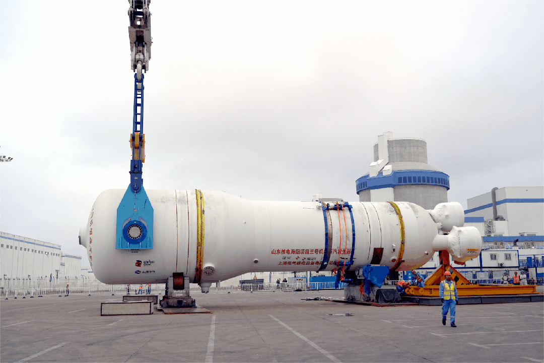 7月1日13時(shí)35分,海陽(yáng)核電3號(hào)機(jī)組核島首臺(tái)蒸汽發(fā)生器順利吊裝就位。