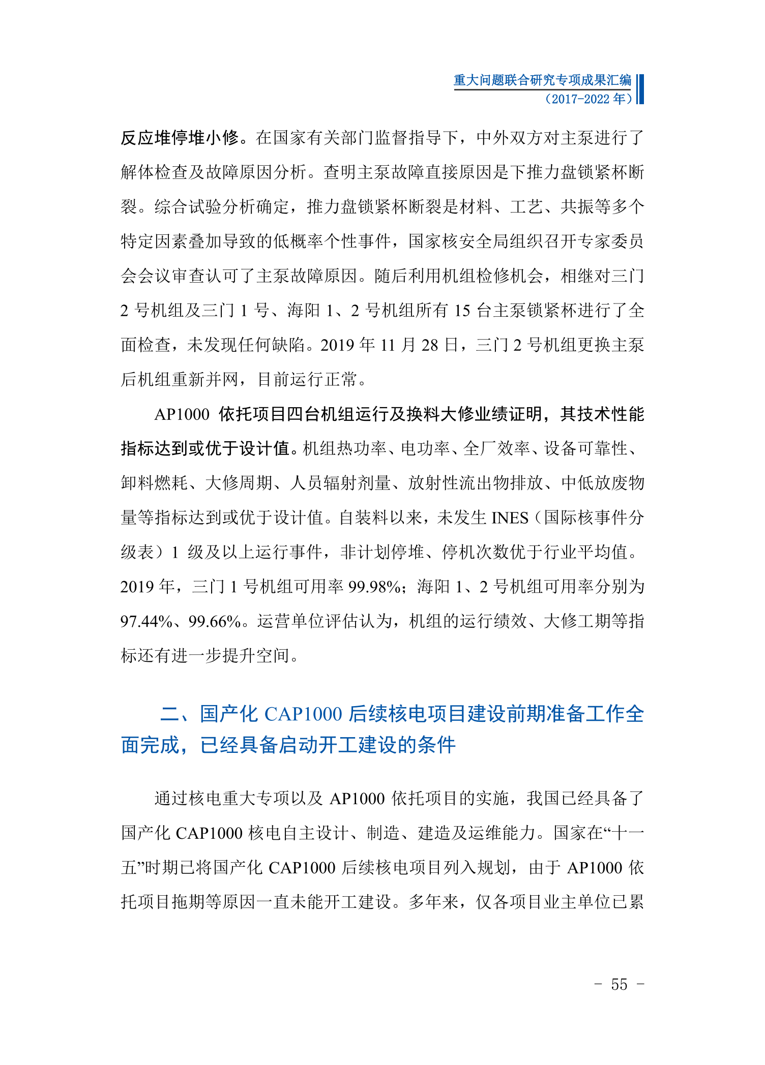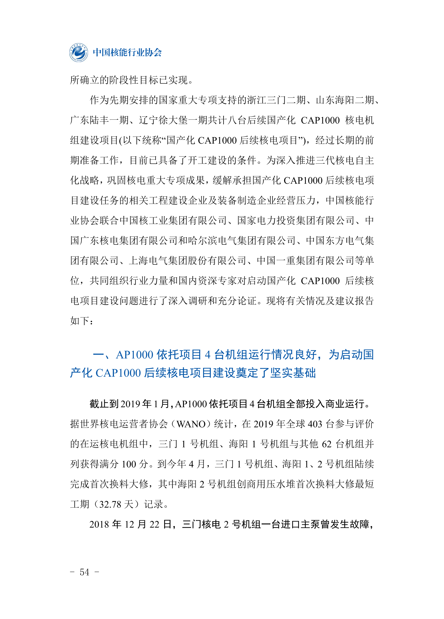 關于啟動國產化CAP1000后續核電項目建設的建議