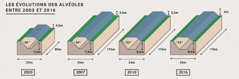 獲得批準后,Cires 將能夠容納總計 950,000 立方米的 TFA,而不是最初批準的 650,000 立方米。通過對處置單元進行各種改進,無需增加存儲面積即可實現這一目標。處置單元最初長 80 米,可容納 10,000 立方米的廢物。2007 年之后,建造了 176 米長的單元,將單元容量增加到 25,000 立方米。2010 年,斜坡變陡并加深了單元,進一步將單元容量增加到 27,000 立方米。2016 年,儲存庫地上部分的高度增加,每個單元的存儲容量增加到約 30,000 立方米。