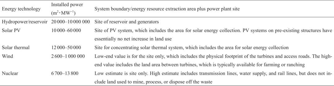 表2 不同能源系統單位裝機容量的土地利用強度[?]