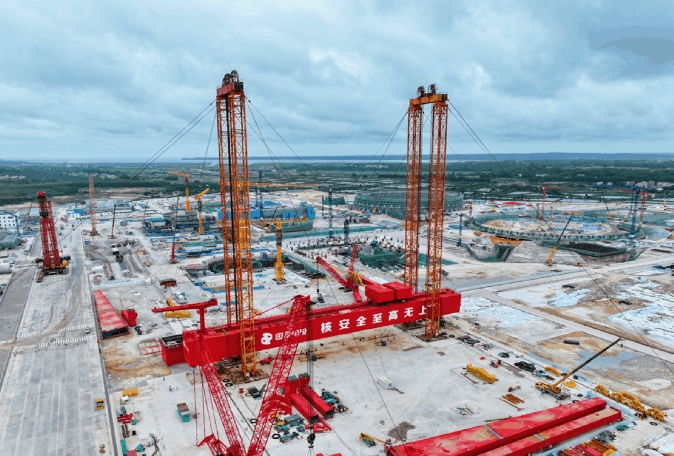 廉江核電項目首創利用橫跨反應堆廠房的大型龍門吊作為工程建設的主吊機,用以代替大型履帶吊進行核電站建設期間大型結構模塊及設備的吊裝及轉運。這在世界核電工程建設領域是首創,將助力我國核能行業新質生產力發展,為全球三代核電工程建設提供國家電投新方案。
