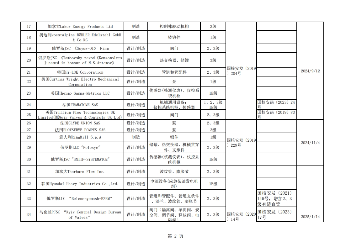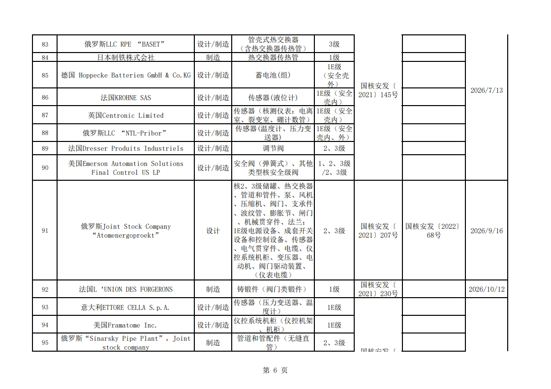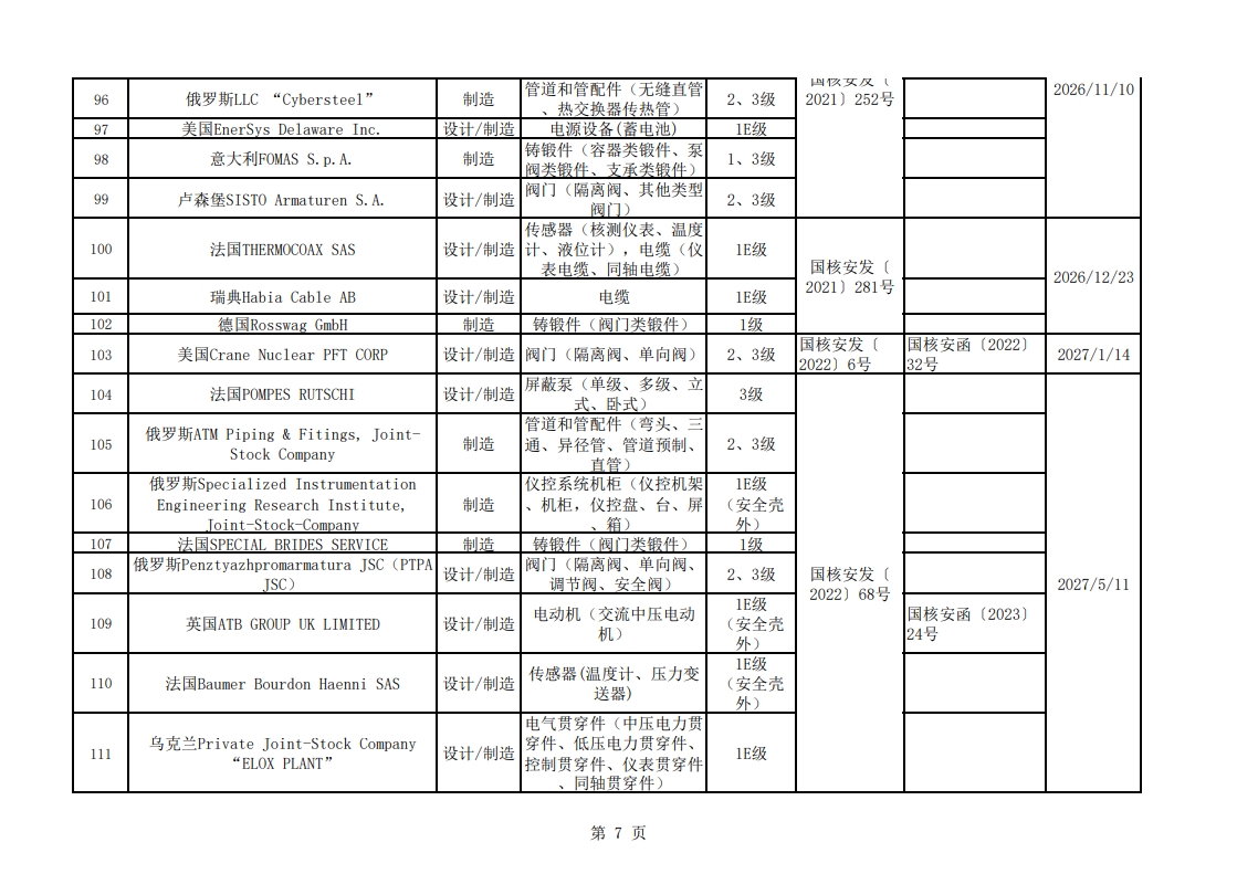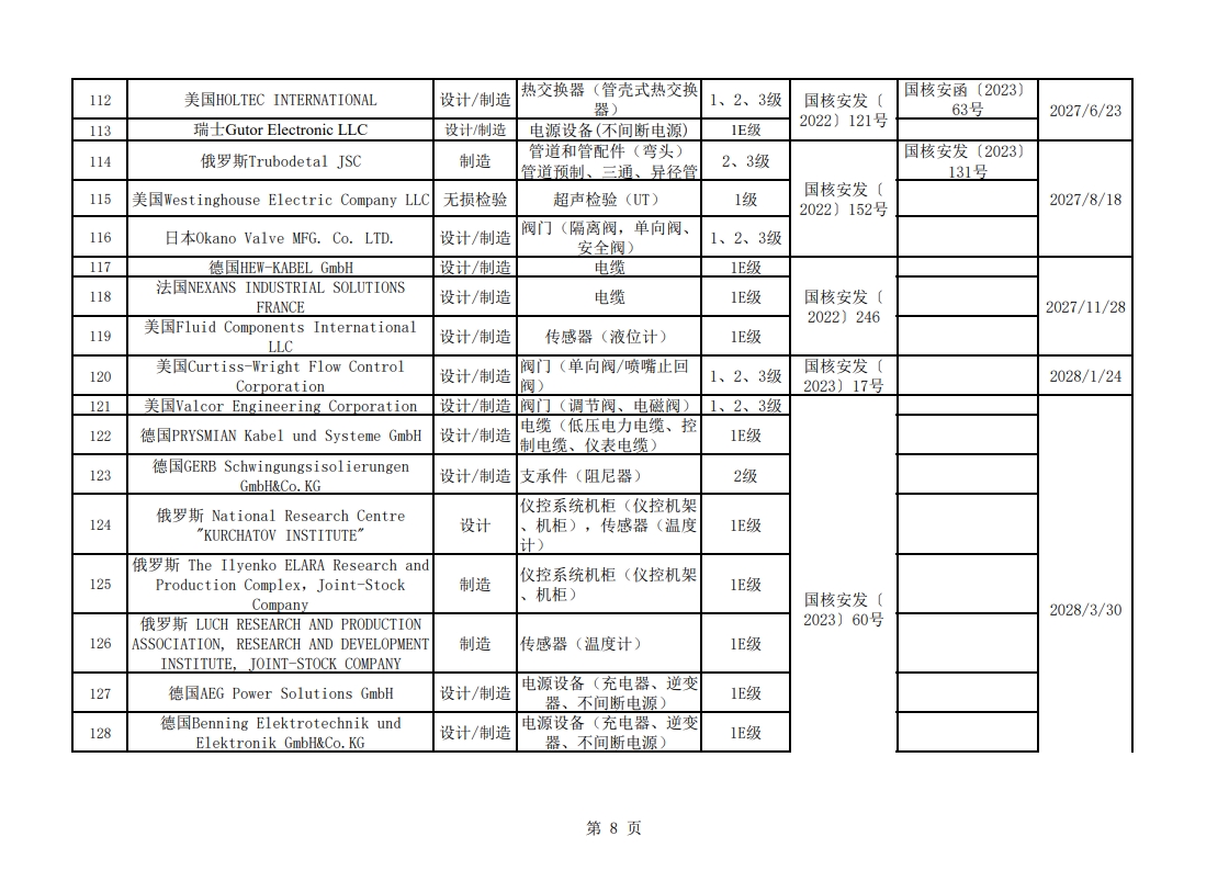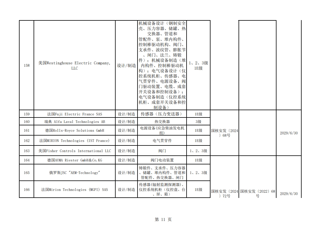 2024年8月1日,國家核安全局發布民用核安全設備活動境外單位注冊登記信息統計表,截至2024年6月30日共有168家登記在冊。