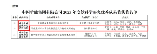關于表彰中國華能集團有限公司 2023 年度 軟科學研究優秀成果的通報