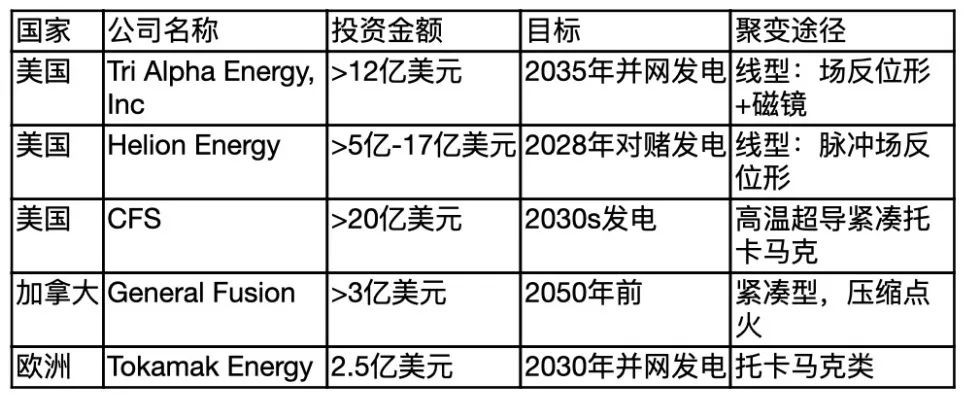 圖為世界其他國家在核聚變領域的重大投資項目