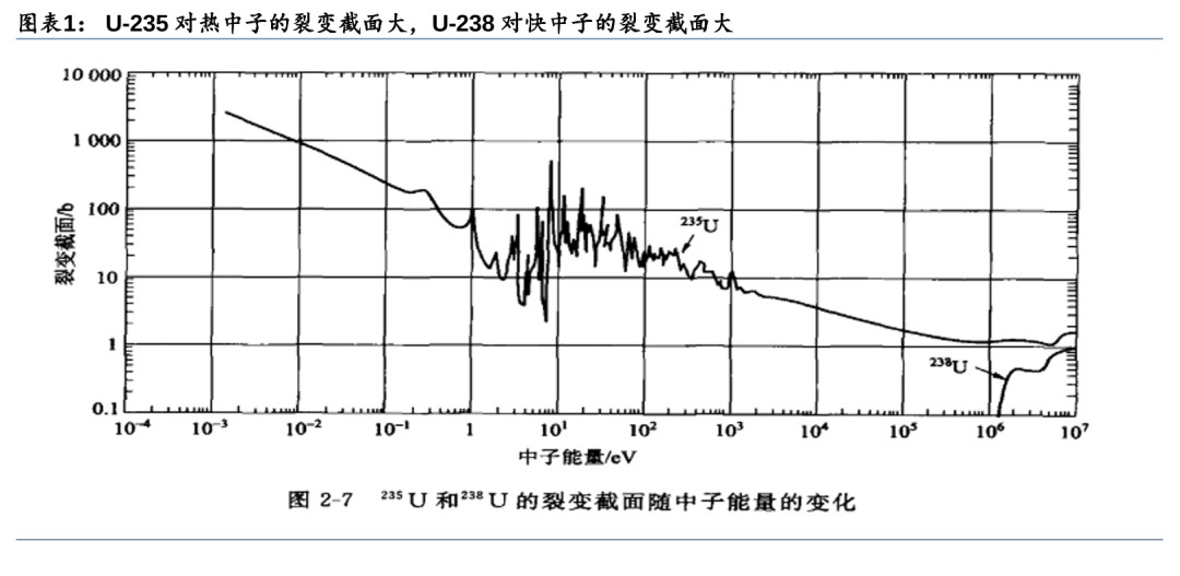 U-235對熱中子裂變截面大,需要慢化劑慢化中子提高反應(yīng)概率。按照中子能量的不同,可將中子分為三類,快中子(E>0.1MeV)、中能中子(1eV<