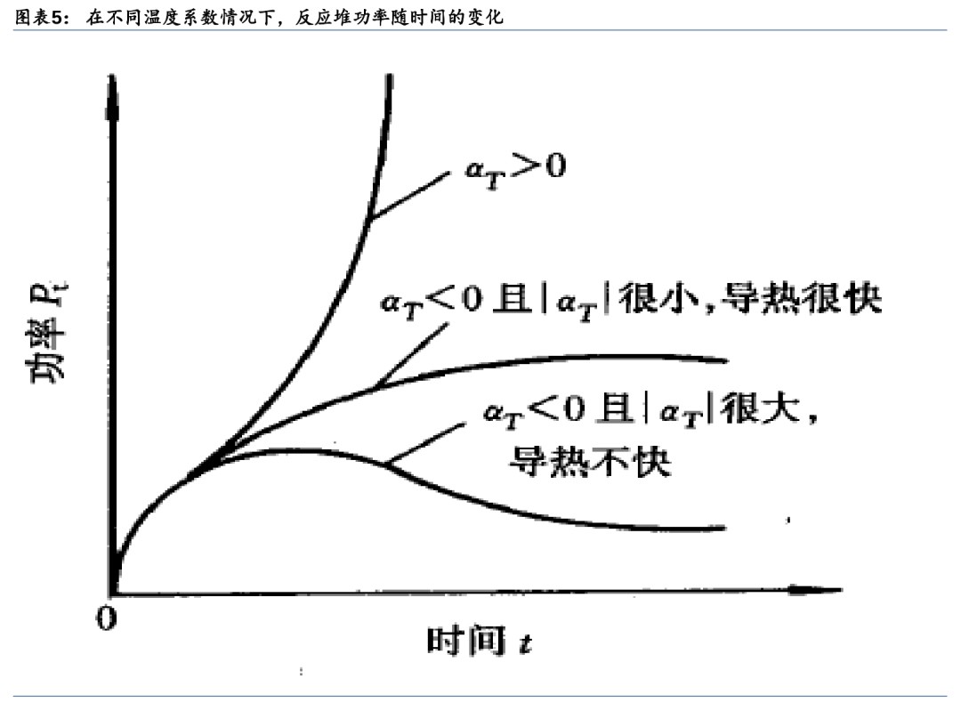 2) 若溫度系數(shù)為負,溫度的升高將導(dǎo)致有效增殖因數(shù)的減小,反應(yīng)性減小,反應(yīng)堆的功率也隨之減小,反應(yīng)堆的溫度逐漸回到初始值。同理,當(dāng)反應(yīng)堆的溫度下降時,將導(dǎo)致有效增殖因數(shù)的增大,反應(yīng)堆的功率也隨之增加,反應(yīng)堆的溫度也逐漸地回到初始值。因此,負反應(yīng)性溫度系數(shù)的負反饋效應(yīng)使得反應(yīng)堆具有內(nèi)在的穩(wěn)定性。