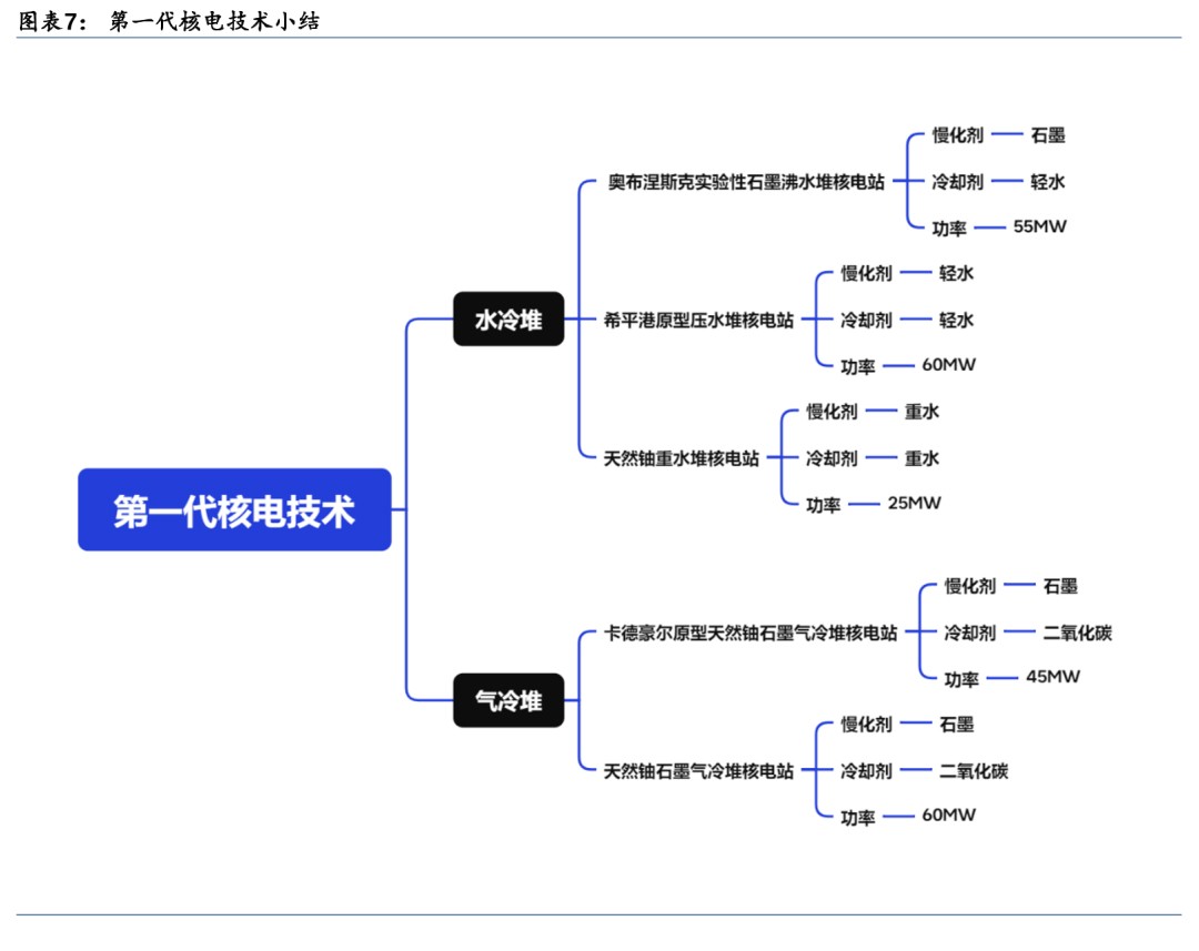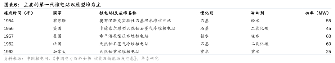 第一代核電:小功率原型堆為主,驗證核電可行性