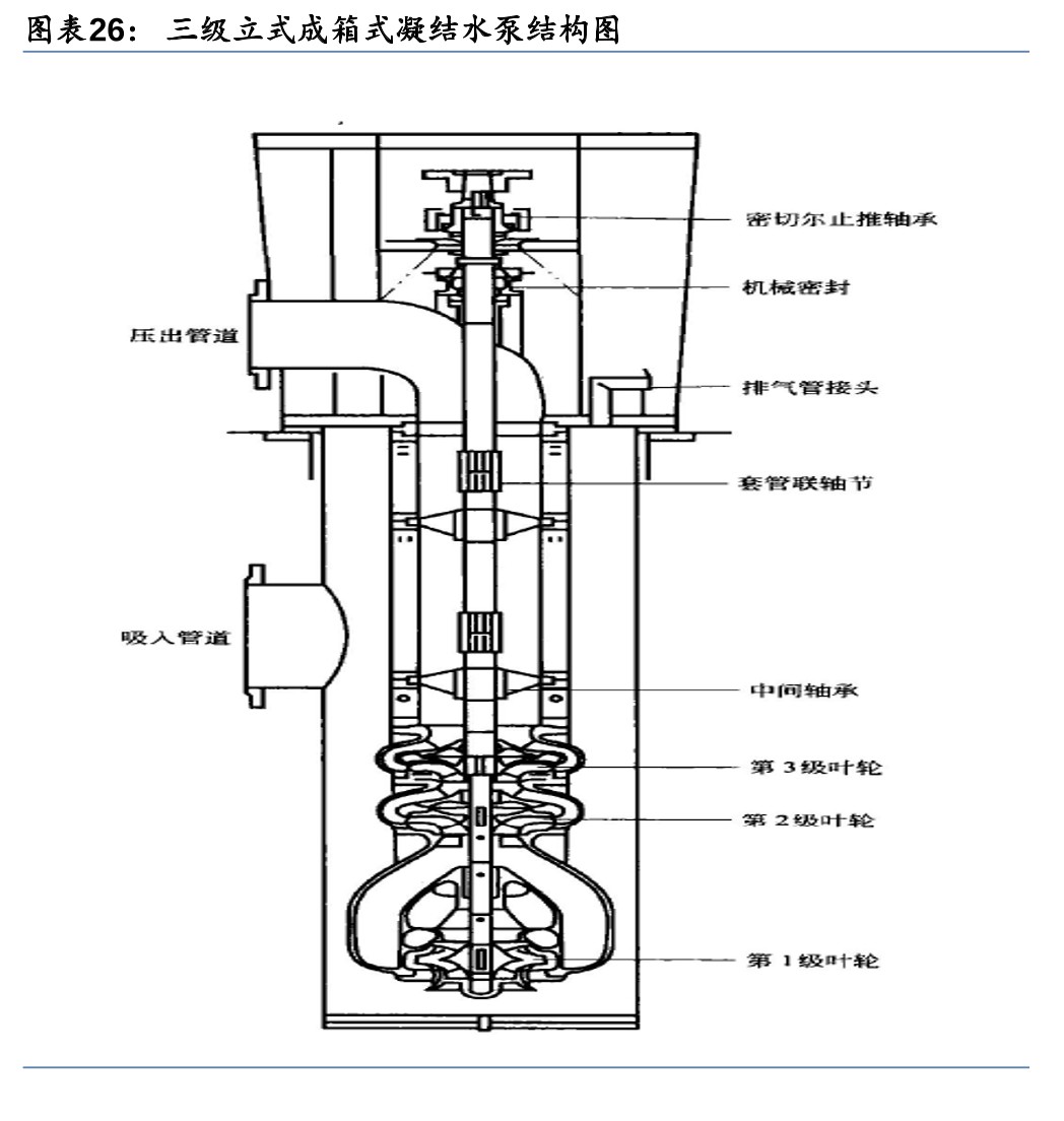 4) 凝結(jié)水泵(泵送凝結(jié)水至除氧器):將凝汽器的主凝結(jié)水抽出、升壓,經(jīng)各級低壓加熱器后送往除氧器。