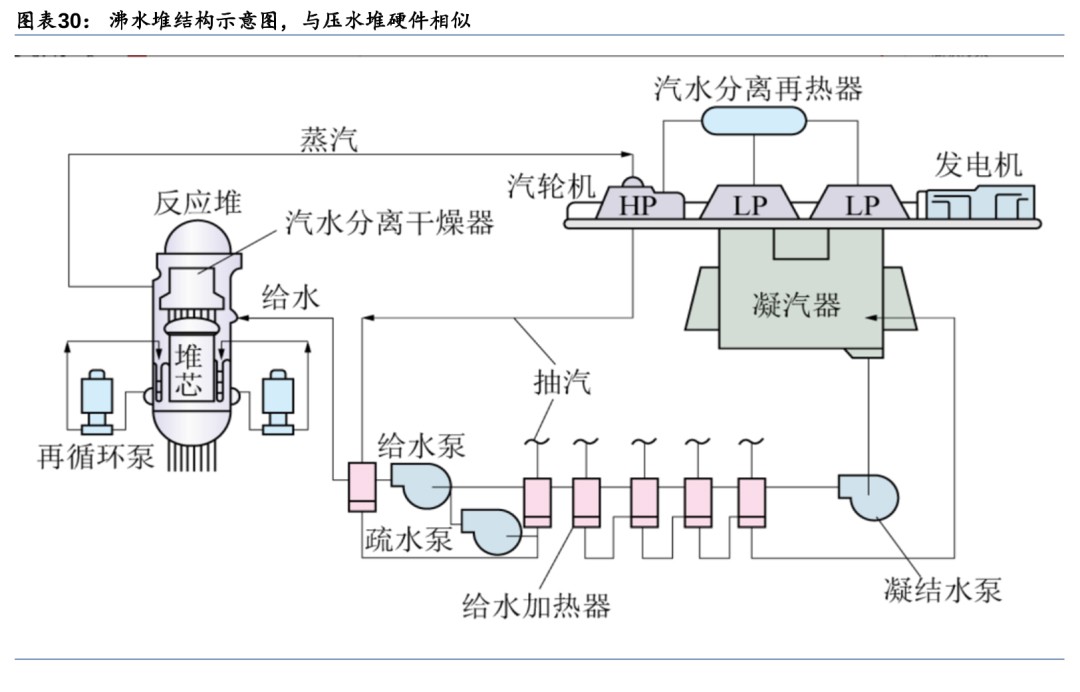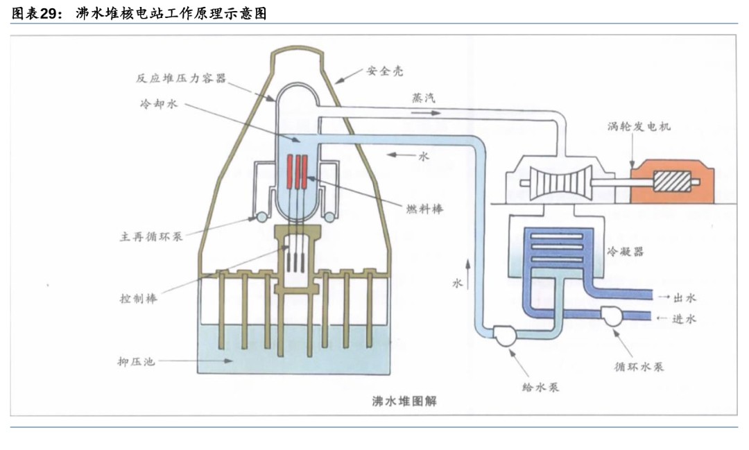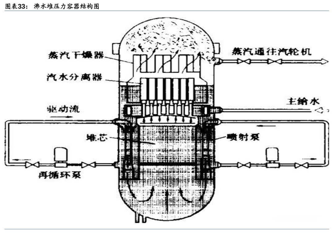 沸水堆(BWR):輕水沸騰直接做功,單一回路結(jié)構(gòu)簡單