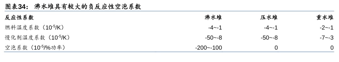 沸水堆系統(tǒng)簡化事故減少/能自動調(diào)節(jié)功率,但存在放射性物質(zhì)泄露和機構(gòu)故障風(fēng)險。沸水堆的優(yōu)點在于:系統(tǒng)簡單,工作壓力較于壓水堆(150個大氣壓)減半,省去了壓水堆電站中的易出現(xiàn)事故的蒸汽發(fā)生器和穩(wěn)壓器,使電站回路事故減少;具有較大負反應(yīng)性空泡系數(shù),能夠自動調(diào)節(jié)反應(yīng)堆功率,使反應(yīng)堆運行更穩(wěn)定。其缺點在于:水沸騰后密度降低,慢化能力減弱,導(dǎo)致功率密度降低;沸水堆蒸汽由堆內(nèi)直接產(chǎn)生進入汽輪機,導(dǎo)致O-16經(jīng)過(n,p)反應(yīng)后產(chǎn)生的N-16的泄露,N-16有很強的γ輻射,因此汽輪機組正常運行時會帶有很強的放射性;控制棒驅(qū)動結(jié)構(gòu)在堆芯底部,一旦發(fā)生緊急停堆事故,控制棒不能依靠重力下降,存在因機構(gòu)故障而不能插入反應(yīng)堆的風(fēng)險。
