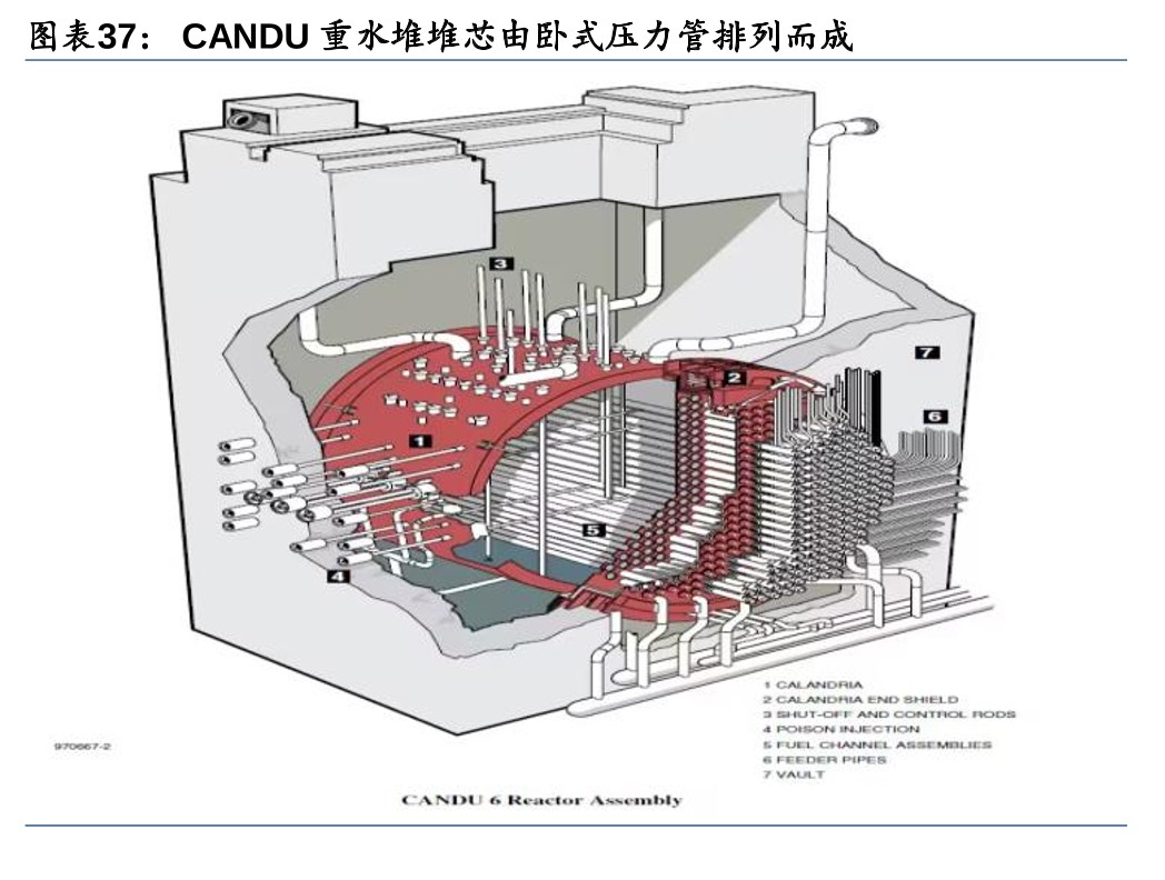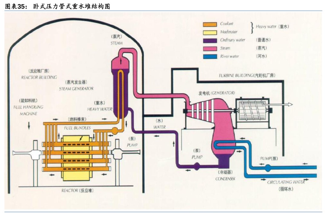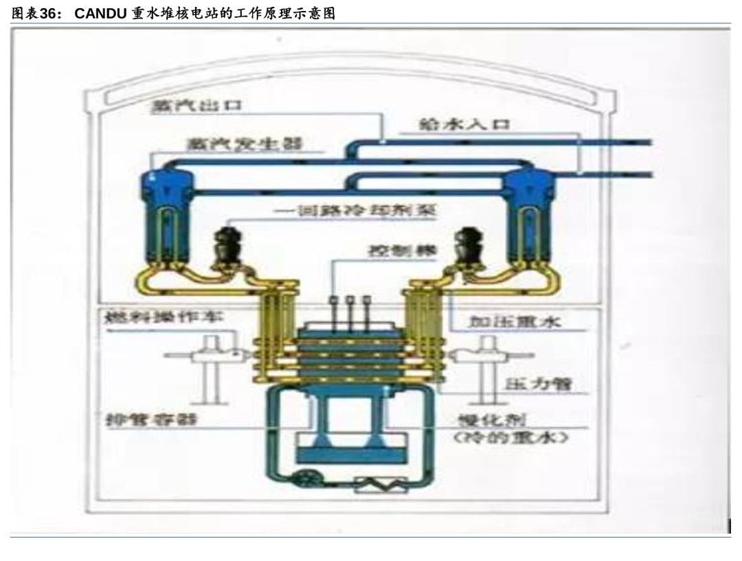 重水堆(PHWR):重水同時作為慢化劑和冷卻劑,可采用天然鈾作為燃料