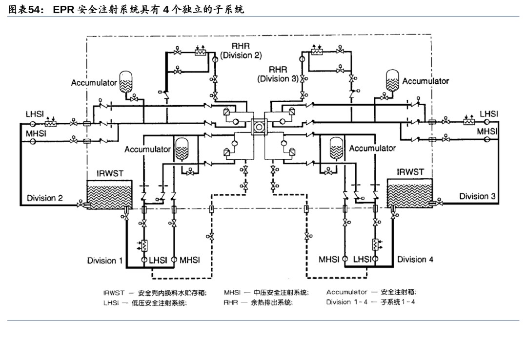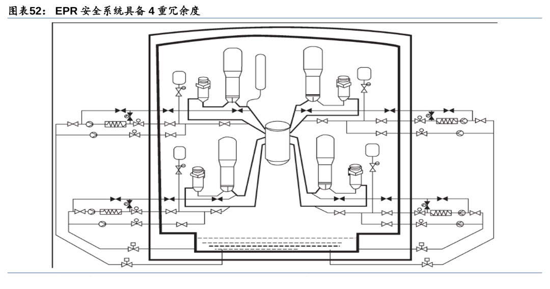 歐洲先進壓水堆(EPR):沿用傳統(tǒng)能動安全系統(tǒng),配備多重冗余度