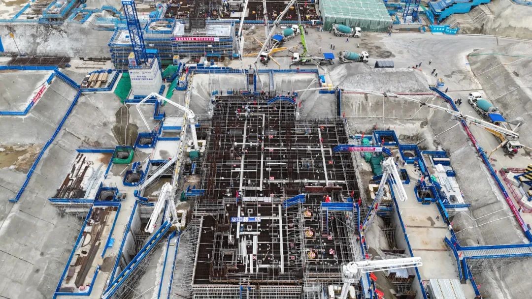 面對混凝土體量大,基底標高多且高差大,鋼筋層數多且密集及復雜的地質條件等挑戰,為確保澆筑順利進行,在公司黨委的部署下,石島灣核電項目部采取了系列措施加快推進節點完成: