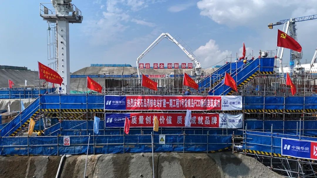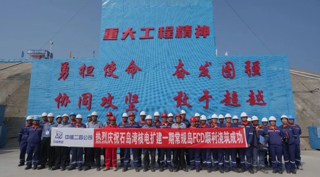 8 月15日,中核二四歷經54小時的連續奮戰,提前15天完成石島灣核電項目一期工程1號機組常規島汽機筏基混凝土澆筑,標志著1號機組常規島全面進入主體結構施工階段。